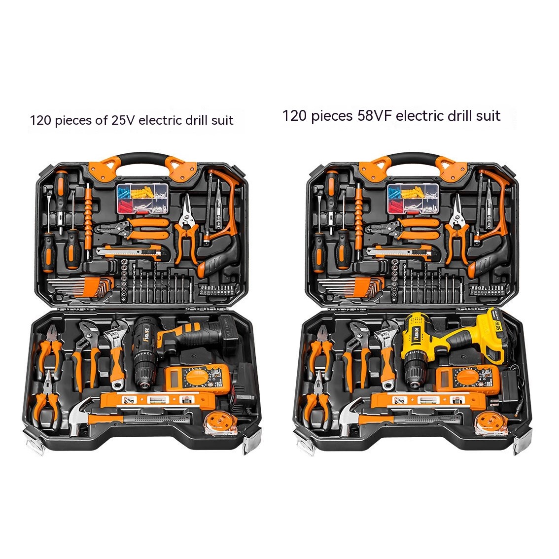 120 Pieces Portable Electrician Carpenter Multifunctional Hardware Tools Cordless Drill Tool Set.